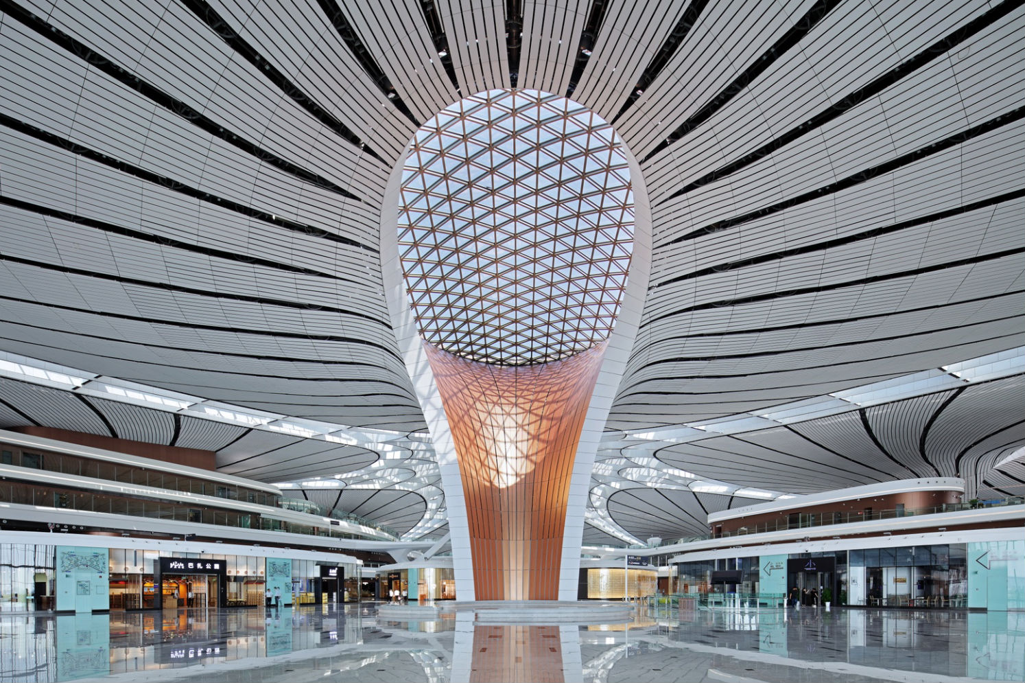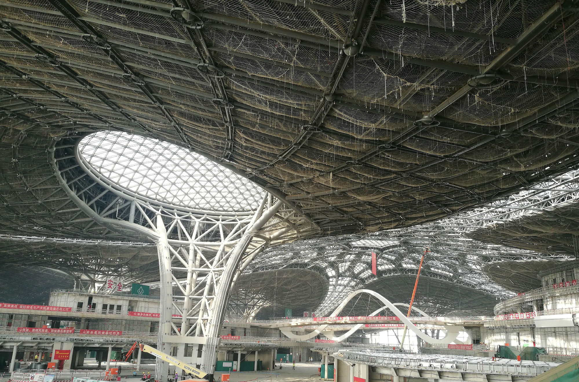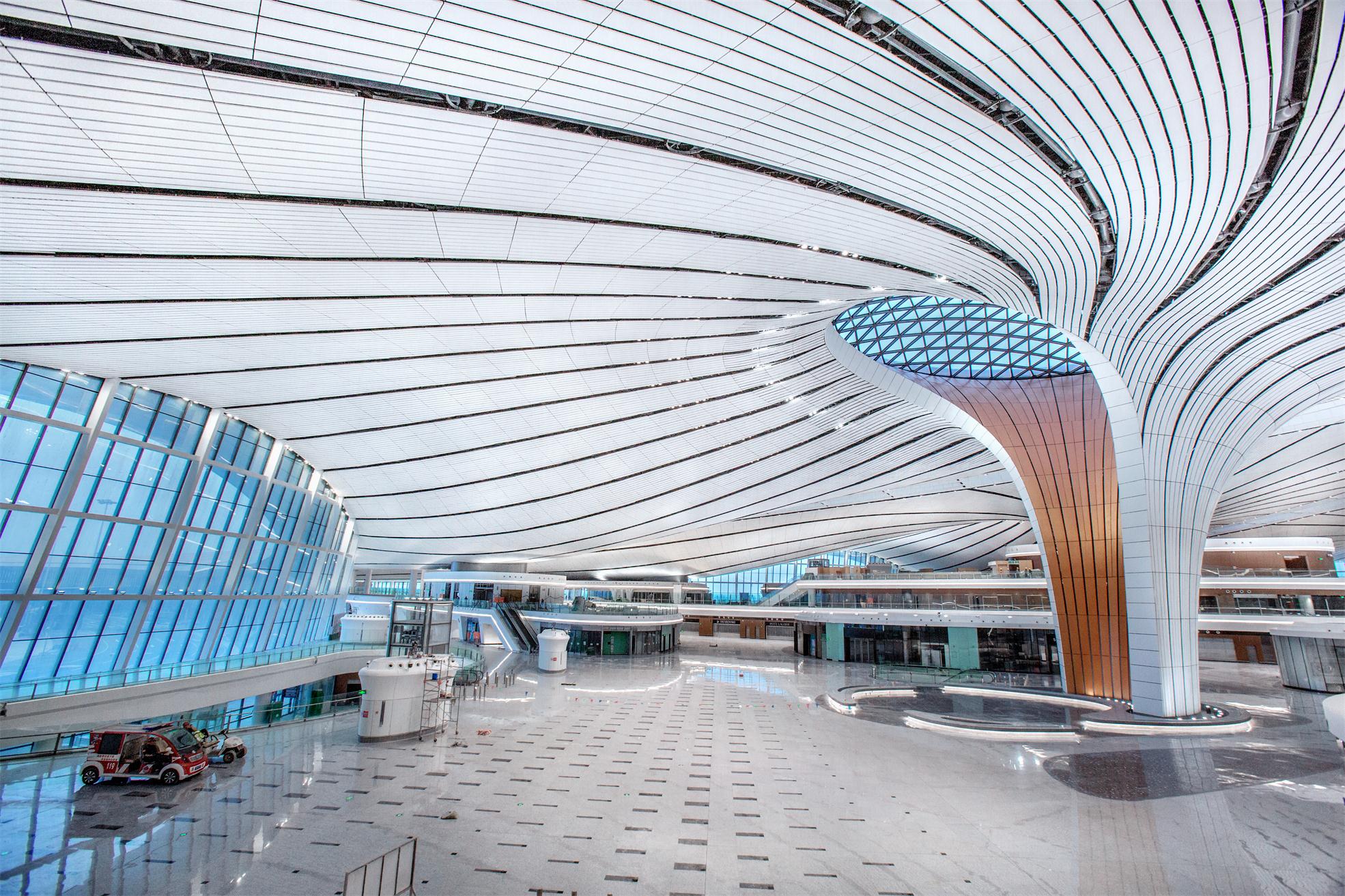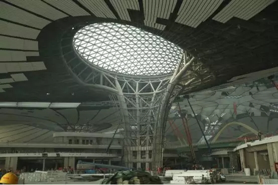 北京新機(jī)場(chǎng)旅客航站樓及綜合換乘中心建筑面積約60萬(wàn)平米,室內(nèi)雙曲面吊頂通過12處落地柱及8處C形柱下卷,與地面相接,形成如意祥云的整體意向。寶鷹集團(tuán)承建的北京大興國(guó)際機(jī)場(chǎng)精裝四標(biāo)段為整個(gè)機(jī)場(chǎng)旅客航站樓及綜合換乘中心核心區(qū)域,近5萬(wàn)平米的通透空間內(nèi)依托東、西兩側(cè)的兩處C型柱接天連地,氣勢(shì)恢宏。