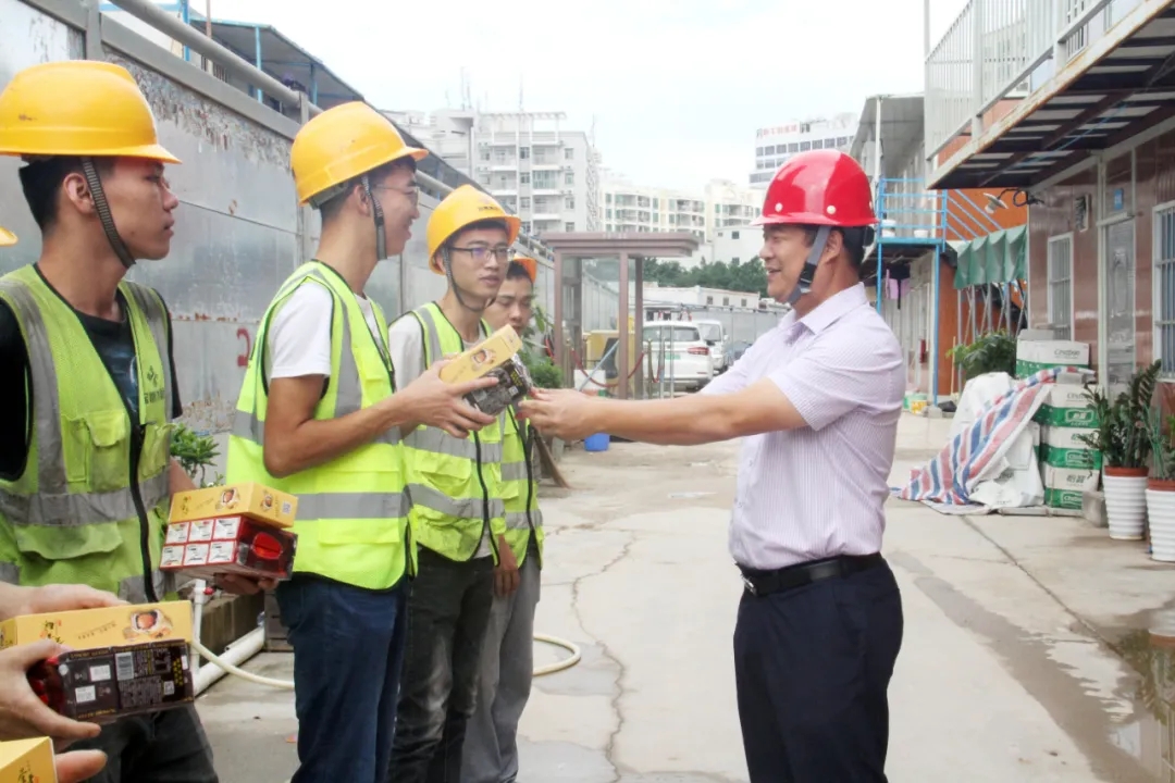 雙節(jié)假期,因工期需要,寶鷹集團(tuán)部分工程項(xiàng)目仍需正常施工,項(xiàng)目建設(shè)者們放棄休息,奮戰(zhàn)一線,全力推進(jìn)項(xiàng)目建設(shè)。10月1日,寶鷹集團(tuán)董事長古少波、總裁于泳波等領(lǐng)導(dǎo)分別帶隊(duì)深入深圳、潮州、武漢等地的部分在建項(xiàng)目考察慰問,與一線員工共度雙節(jié)。