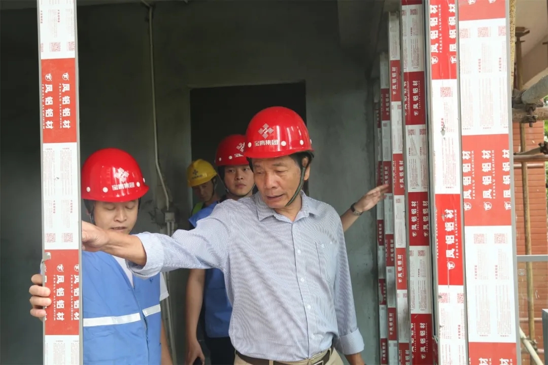 在德弘天下華府鋁合金門窗施工項(xiàng)目現(xiàn)場,寶鷹集團(tuán)副總裁葉肖亞就項(xiàng)目承攬、施工質(zhì)量、項(xiàng)目安全文明施工情況一一了解,還就施工中存在的困難及應(yīng)對措施、工程項(xiàng)目管控流程制度優(yōu)化等,與項(xiàng)目人員進(jìn)行了座談交流。他指出,工程質(zhì)量就是生命線,要嚴(yán)把質(zhì)量關(guān),同時(shí)注意安全文明施工事項(xiàng),以實(shí)際行動(dòng)打造寶鷹精品工程。
