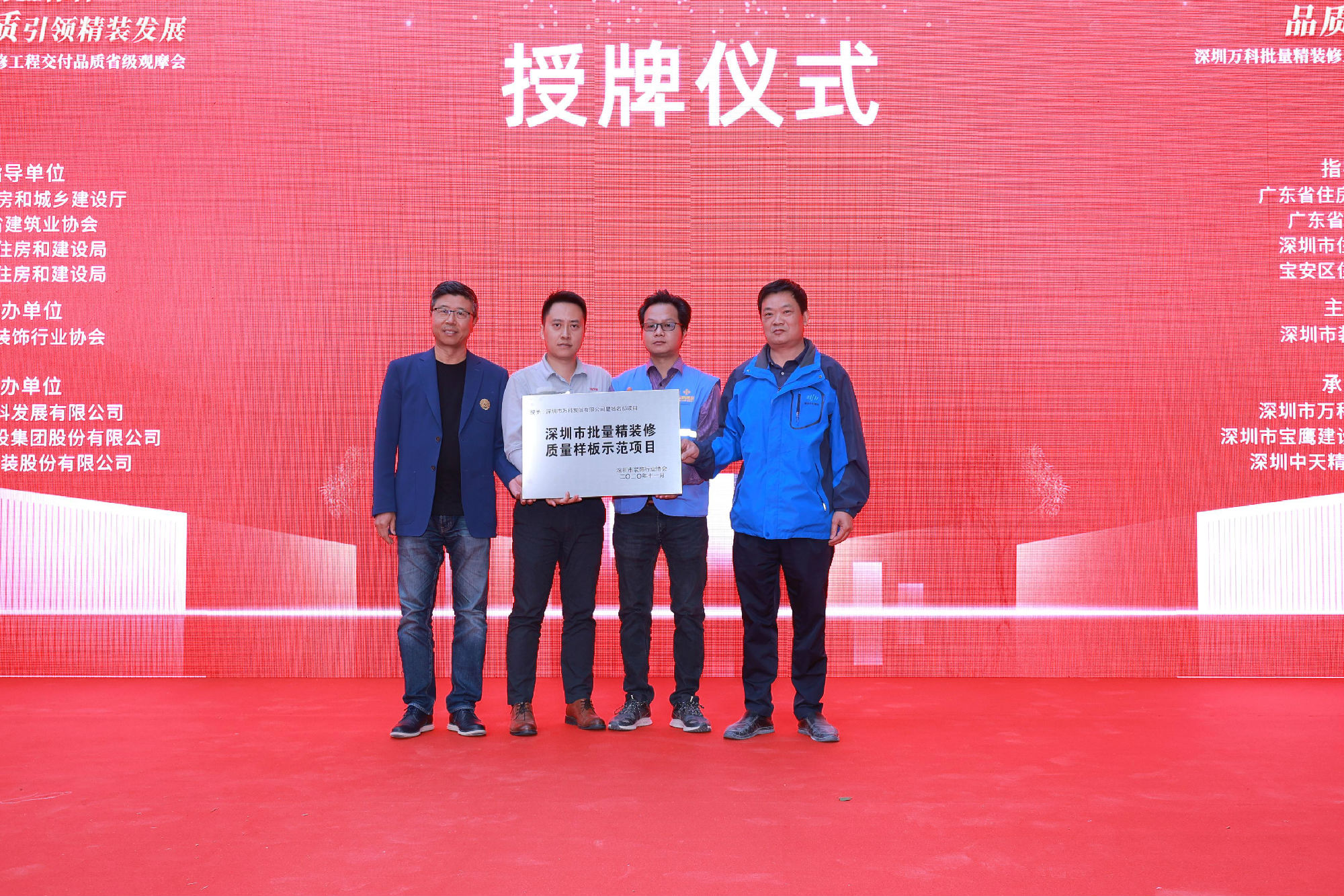 活動中,高剛會長授予深圳萬科星城名邸項目 “深圳市批量精裝修質量樣板示范項目”的榮譽。
