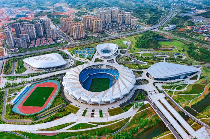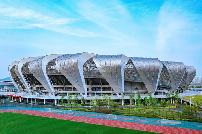 宜昌奧林匹克體育運動中心總建筑面積20.64萬平方米,由“一場四館”組成,包括體育場、綜合體育館、游泳館、網(wǎng)羽運動中心、射擊館等場館和配套設(shè)施。運動中心以宜昌市花“百合綻放”為設(shè)計立意,體現(xiàn)建筑與周邊環(huán)境和諧共生理念,為湖北省首個綜合體育園區(qū)。寶鷹集團負責該項目體育館、游泳館、射擊館、網(wǎng)羽中心幕墻工程。