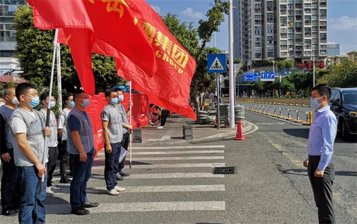南山街道向南社區(qū)領(lǐng)導(dǎo)歡送寶鷹集團(tuán)抗疫志愿者服務(wù)隊(duì)伍