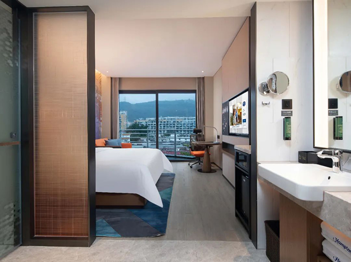 項(xiàng)目以希爾頓歡朋酒店4.0標(biāo)準(zhǔn)打造建設(shè),高質(zhì)量高標(biāo)準(zhǔn),128間客房全部采用美國“Hampton Bed” 標(biāo)準(zhǔn)的高端用品,對材料管理和施工工藝要求極高。項(xiàng)目團(tuán)隊(duì)嚴(yán)格管控材料使用,加強(qiáng)材料和設(shè)備的“四驗(yàn)”工作,做到分類分批保管和堆放。在施工中,嚴(yán)抓細(xì)節(jié),規(guī)范作業(yè),建立樣板先行制度,對每道工序,每項(xiàng)產(chǎn)品進(jìn)行逐一確定,再進(jìn)行大面積標(biāo)準(zhǔn)化施工,既保證工程質(zhì)量,又提高施工效率。