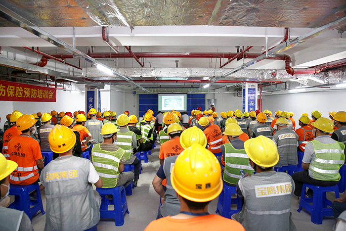 5月9日下午,深圳市建筑裝飾行業(yè)工傷保險(xiǎn)預(yù)防培訓(xùn)會(huì)在寶鷹集團(tuán)深圳會(huì)展灣東城廣場(二期)公寓戶內(nèi)批量精裝修施工(一標(biāo)段)項(xiàng)目舉行。深圳市裝飾行業(yè)協(xié)會(huì)常務(wù)副會(huì)長王彥波、寶鷹集團(tuán)總工程師王建國、寶鷹集團(tuán)副總裁鐘志剛以及項(xiàng)目一線管理生產(chǎn)人員150余人參加培訓(xùn)。