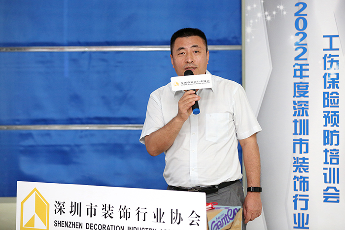 深裝協(xié)常務(wù)副會(huì)長王彥波在致辭時(shí)表示,建筑裝飾行業(yè)極具勞動(dòng)強(qiáng)度大、項(xiàng)目小而散、人員密集且流動(dòng)性大的特點(diǎn),因此對從業(yè)人員進(jìn)行工傷預(yù)防培訓(xùn)是非常必要的。通過培訓(xùn),既保護(hù)了勞動(dòng)者的基本權(quán)益,也保障了企業(yè)的經(jīng)營生產(chǎn)安全。希望寶鷹集團(tuán)深入貫徹政府部門及協(xié)會(huì)的相關(guān)部署,扎實(shí)全面做好工傷保險(xiǎn)預(yù)防宣講和培訓(xùn)工作。