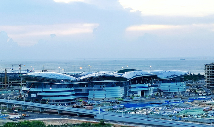 ??趪H免稅城作為亞洲最大免稅城項目,“超級工程”的背后不僅是寶鷹承諾的步步兌現(xiàn),更是??诠こ虉F隊汗水與匠心的聚集。為全力以赴推進項目建設(shè),項目團隊克服疫情反復(fù)、人員組織困難、材料設(shè)備漲價、供應(yīng)鏈緊張等問題,科學(xué)全面統(tǒng)籌,有序組織生產(chǎn),堅持高標(biāo)準(zhǔn)嚴(yán)要求高效率推進項目建設(shè),努力打造高品質(zhì)精品示范項目。