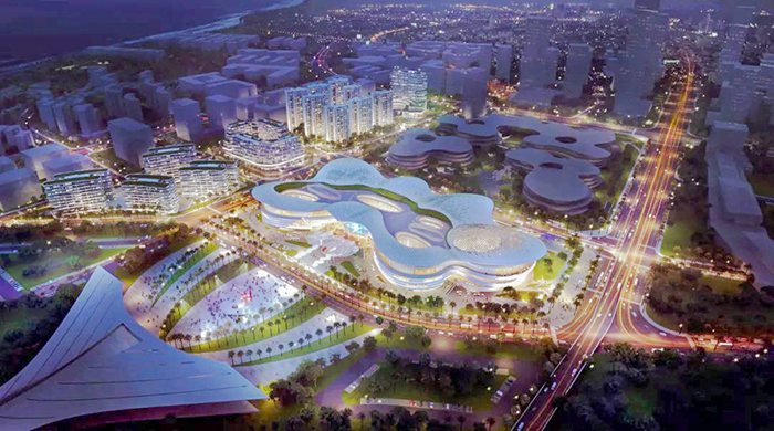 海口國際免稅城免稅商業(yè)中心位于??谖骱0缎潞8蹡|側(cè),是海南重點打造的國家級國際旅游消費中心,規(guī)劃占地面積675畝,總建筑面積約93萬平方米。作為集免稅、辦公、公寓、休閑、文旅為一體的世界級度假型商業(yè)街區(qū),其建成后將成為亞洲最大的國際免稅商業(yè)綜合體,海南免稅購物版圖將再添“新地標(biāo)”,與三亞國際免稅城形成南北呼應(yīng)的格局,助力海南建設(shè)國際旅游消費中心。