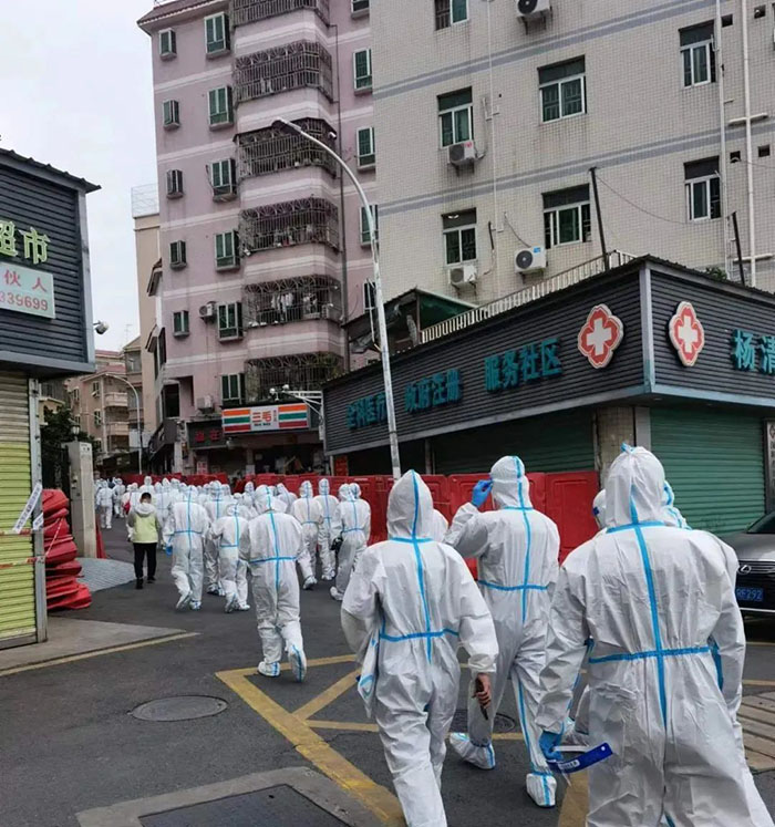 在寶鷹第五黨支部書記、副總裁陳貴涌的帶領(lǐng)下,志愿者們迅速集結(jié)到位,并在社區(qū)的協(xié)調(diào)安排下,快速化整為零,分成1個(gè)指揮組和多個(gè)網(wǎng)格行動(dòng)小組,開展維護(hù)秩序、核酸檢測(cè)、做流調(diào)、環(huán)境消殺、垃圾清運(yùn)、物資配送、配藥送菜、人員轉(zhuǎn)運(yùn)等工作。大家相互配合,將各項(xiàng)工作安排得井井有條,有效消除了居民的焦慮情緒。