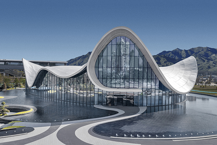 項(xiàng)目位于肇慶市鼎湖區(qū),總建筑面積5105平方米,定位為世界級(jí)度假目的地。其展示中心設(shè)計(jì)靈感來源于肇慶著名的風(fēng)景區(qū)七星巖以及肇慶市花荷花。以特殊的建筑造型,成為展示國(guó)家度假區(qū)以及肇慶文化旅游的形象窗口。