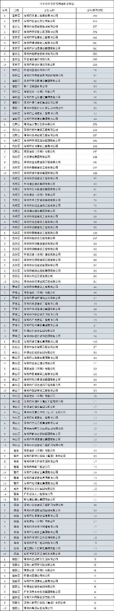三、2022年深圳市建筑企業(yè)在全國建筑業(yè)市場的中標排名前20名,按中標數(shù)量排名如下:
