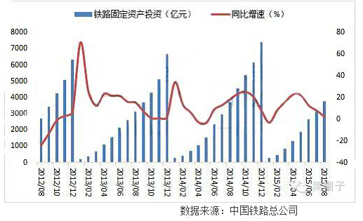 2015年1-8月,國(guó)家鐵路完成固定資產(chǎn)投資3786.3億元,同比增長(zhǎng)2.4%,增速有所放緩。
