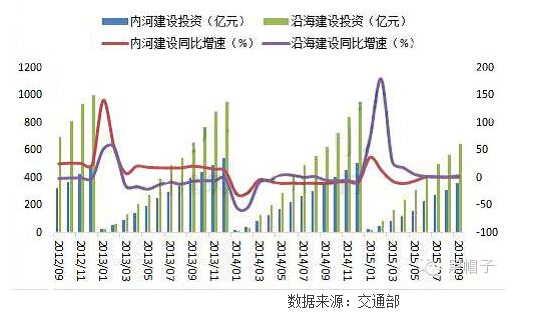 2015年前三季度水運(yùn)建設(shè)完成投資1007.63億元,同比增長(zhǎng)3.23%。 其中,內(nèi)河建設(shè)完成投資361.13億元,同比增長(zhǎng)0.87%;沿海建設(shè)完成投資646.5億元,同比增長(zhǎng)3.69%。