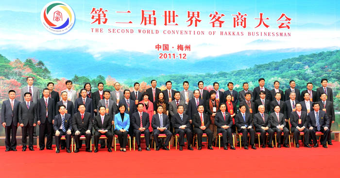 2011年12月5日上午10時(shí),客都亮勝藝術(shù)中心國(guó)歌嘹亮,全場(chǎng)肅立:第二屆世界客商大會(huì)在全球1億3千萬(wàn)客家人的矚目中拉開帷幕,來(lái)自世界13個(gè)國(guó)家和地區(qū),國(guó)內(nèi)13個(gè)省、自治區(qū)、直轄市及港澳臺(tái)的1000多名客家商界精英和近100個(gè)客屬團(tuán)聚首客都,齊襄盛舉。此外,作為首次參加世界客商大會(huì)的廣東普寧客家地區(qū)也派出了由林良、黃清漢、賴賢、溫秋亮等優(yōu)秀代表共同組成的客屬團(tuán)熱情參加盛會(huì)、共謀發(fā)展大計(jì)。