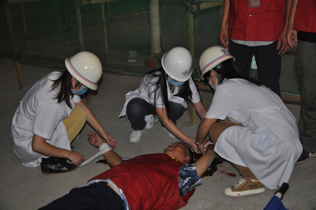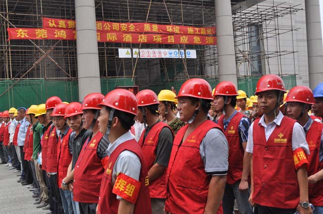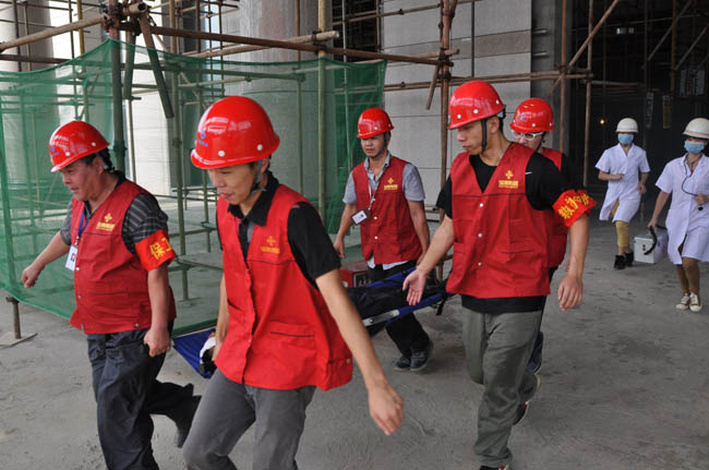為加強(qiáng)在建工地的安全管理,增強(qiáng)工人的安全意識(shí),提高對(duì)建筑施工現(xiàn)場(chǎng)突發(fā)事故的實(shí)戰(zhàn)能力,檢驗(yàn)公司安全生產(chǎn)事故應(yīng)急救援預(yù)案合理性與可行性。8月19日上午,由集團(tuán)質(zhì)量安全部與工程管理中心工程四部聯(lián)合組織的建筑施工現(xiàn)場(chǎng)應(yīng)急演練在指定項(xiàng)目工地舉行,集團(tuán)常務(wù)副總裁許平參加了演練現(xiàn)場(chǎng)觀摩,200多名施工人員人與工程業(yè)主方相關(guān)人員配合參加了此次演練。