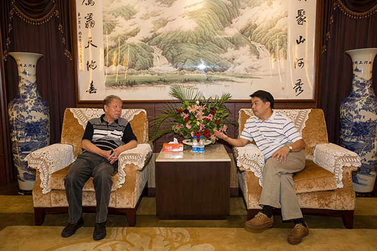 古少波董事長(zhǎng)向李秉仁會(huì)長(zhǎng)匯報(bào)公司發(fā)展情況