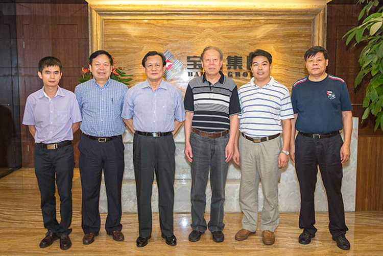 各位領(lǐng)導(dǎo)在寶鷹集團(tuán)總部合影留念(圖中右三為中國(guó)建筑裝飾協(xié)會(huì)李秉仁會(huì)長(zhǎng)、左三為中國(guó)建筑裝飾協(xié)會(huì)劉曉一常務(wù)副會(huì)長(zhǎng)兼秘書長(zhǎng)、右一為中國(guó)建筑裝飾協(xié)會(huì)陳新副會(huì)長(zhǎng)、右二為寶鷹集團(tuán)古少波董事長(zhǎng)、左二為寶鷹集團(tuán)成湘文總裁)