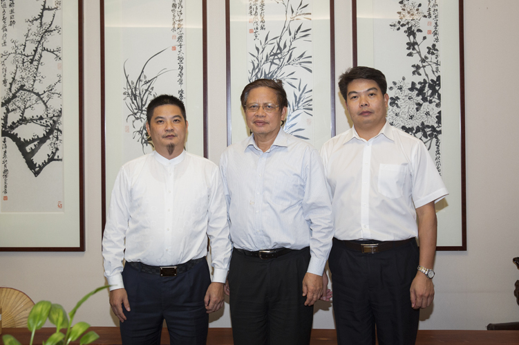 李大西博士與古少波董事長、古樸副總裁(左)合影留念