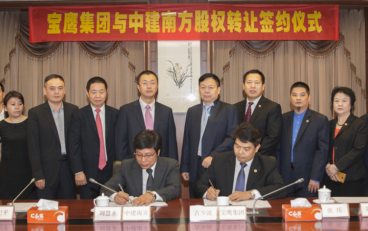 2014年9月28日,深圳市寶鷹建設集團股份有限公司(下稱“寶鷹集團”)與深圳市中建南方裝飾工程有限公司(下稱“中建南方”)股權轉讓簽約儀式在寶鷹集團總部隆重舉行。