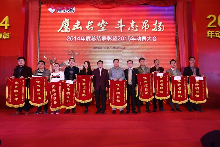 2015 年 2 月 27 日,寶鷹集團(tuán) 2014 年度總結(jié)表彰暨 2015 年動(dòng)員大會于深圳香蜜湖盛大舉行。寶鷹集團(tuán)董事局主席古少明、監(jiān)事會主席胡蘭萍、董事長古少波及其他領(lǐng)導(dǎo)班子成員、寶鷹集團(tuán)各位股東、股東代表,寶鷹集團(tuán)各位董事、獨(dú)立董事,寶鷹集團(tuán)全體同仁出席了此次大會。此外,此次大會還邀請了深圳裝飾行業(yè)協(xié)會會長高剛、副會長莊志偉、副秘書長王彥波,深圳市公安局經(jīng)濟(jì)犯罪偵查局副局長林顯運(yùn),中建南方董事長劉慧永、總經(jīng)理張玨、常務(wù)副總經(jīng)理嚴(yán)美文等嘉賓。寶鷹集團(tuán)常務(wù)副總裁許平主持大會。
