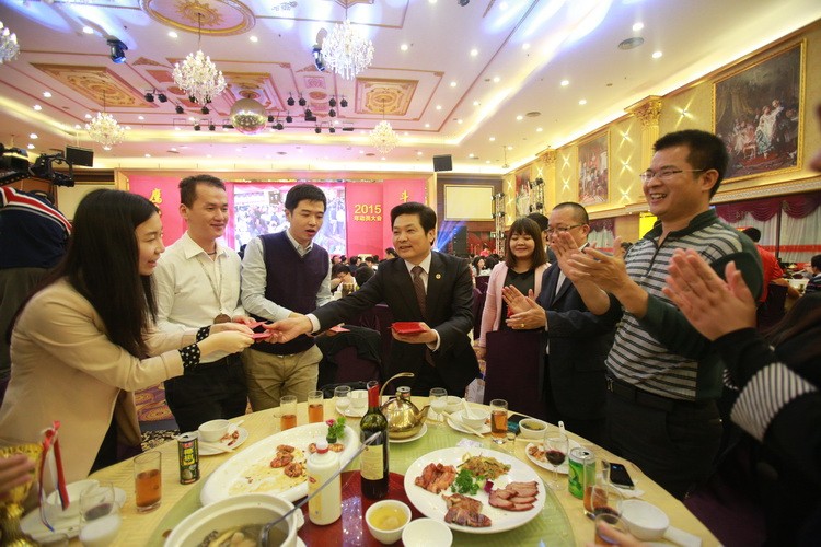 寶鷹集團(tuán)董事局主席古少明在講話中深情表達(dá)了對寶鷹集團(tuán)同仁在 2014 年努力工作的謝意,并強(qiáng)調(diào) 2014 年寶鷹集團(tuán)的成績是所有寶鷹人團(tuán)結(jié)一致、共同努力的結(jié)果。古少明主席亦對寶鷹集團(tuán)在 2015 年的發(fā)展寄予厚望,進(jìn)一步提出了對 2015 年工作的新要求,動(dòng)員大家在 2015 年為新的夢想奮斗不止。最后,古少明主席在致辭完畢后和諸位領(lǐng)導(dǎo)、嘉賓一起舉起了酒杯,共同祝福大家新年快樂,羊年大吉!祝酒完畢后,古少明主席神秘地宣布要為現(xiàn)場所有人員派發(fā)新春紅包,送上新年祝福。