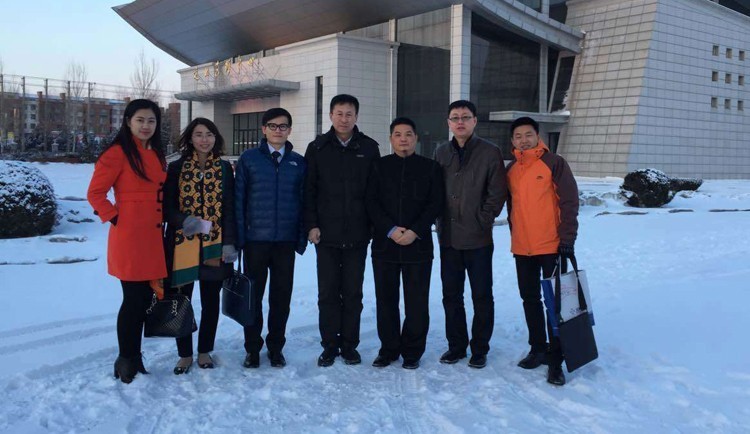 寶鷹集團(tuán)古樸副總裁(右三)、吳義課總裁助理(左三)一行與黑龍江建筑職業(yè)技術(shù)學(xué)院相關(guān)領(lǐng) 導(dǎo)合影