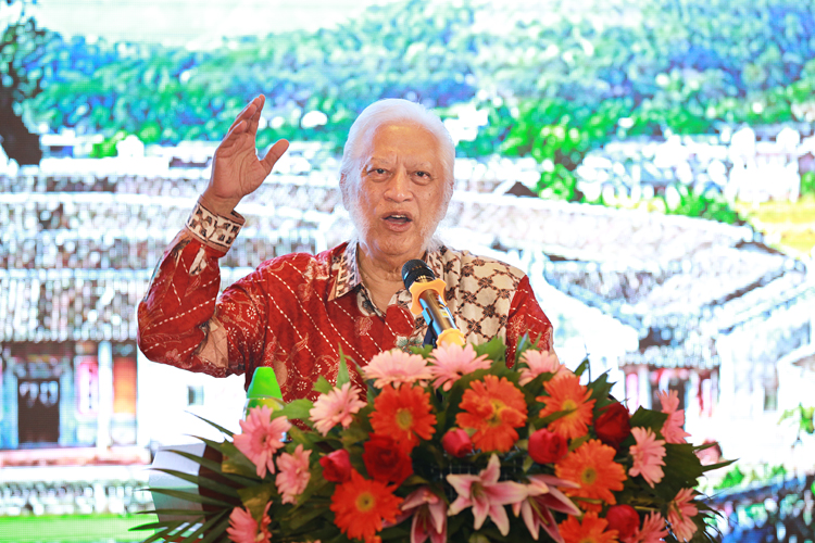 在開拍儀式后,故事原型熊德龍董事長(zhǎng)和投資方代表古樸副總裁深入電視劇拍攝基地——中山影視城,親切探望了演員和劇組工作人員。熊德龍董事長(zhǎng)和古樸副總裁不僅熱切地就電視劇拍攝相關(guān)事宜親切詢問,事事關(guān)心,還熱忱地關(guān)懷著演員和劇組人員的生活。在開拍晚宴上,熊德龍董事長(zhǎng)表示《親親中國(guó)爹娘》電視劇的開拍,和廣東文化界領(lǐng)導(dǎo)及友商的大力支持是分不開的,亦和中印尼兩國(guó)人民的德美觀念是完全契合的。爸爸媽媽用大愛和無私構(gòu)筑起的美好家園將像這部劇一樣,遍地開花。熊德龍董事長(zhǎng)還表示,為了塑造更加豐富的人物形象,還原更加真實(shí)的歷史場(chǎng)景,給觀眾帶來一場(chǎng)現(xiàn)實(shí)感和藝術(shù)性兼具的作品,自己可以隨時(shí)向劇組提供素材協(xié)助。古樸副總裁在致辭中表示《親親中國(guó)爹娘》既是首部反應(yīng)中國(guó)和印尼人員友好的電視劇,也是首部反應(yīng)客家文化的大型中外合拍電視劇,整部劇以慈孝、感恩、勵(lì)志、奉獻(xiàn)等精神為主題,響應(yīng)著時(shí)代潮流,傳播著社會(huì)正能量。這股正能量正是當(dāng)下中國(guó)所急需的,更是全世界所急需的。愿劇組所有工作人員能用他們精湛的技藝和辛勤的勞動(dòng)去詮釋飽含深情的故事,用情感感染觀眾,用藝術(shù)征服觀眾,用文化啟迪觀眾,用優(yōu)秀的作品為弘揚(yáng)中華傳統(tǒng)文化,彰顯客家人文精神作注解,為人類靈魂提供充足的養(yǎng)料。愿觀眾能從劇中領(lǐng)略到中國(guó)民族的優(yōu)良傳統(tǒng)和優(yōu)秀品質(zhì),激勵(lì)自己,為社會(huì)做出更大貢獻(xiàn)。此外,熊德龍董事長(zhǎng)和古樸副總裁還對(duì)演員和劇組人員即將面對(duì)的辛苦工作表示感謝。