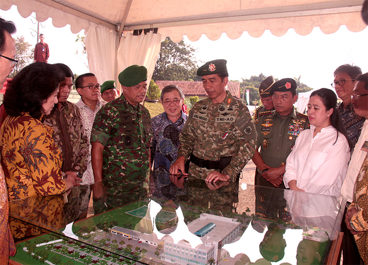 佐科維總統(tǒng)在講話中表示,很高興參加陸軍總醫(yī)院奠基儀式。他說,以前陸軍總醫(yī)院雖然在市中心,但是規(guī)模小。現(xiàn)在雖然在郊區(qū),但是規(guī)模大了很多,建成后可以為陸軍、特種部隊(duì)和當(dāng)?shù)厝嗣裉峁└玫尼t(yī)療服務(wù)?,F(xiàn)在只是第一家,以后我們預(yù)計(jì)在全國(guó)27個(gè)軍區(qū)都要建設(shè)這樣的醫(yī)院。