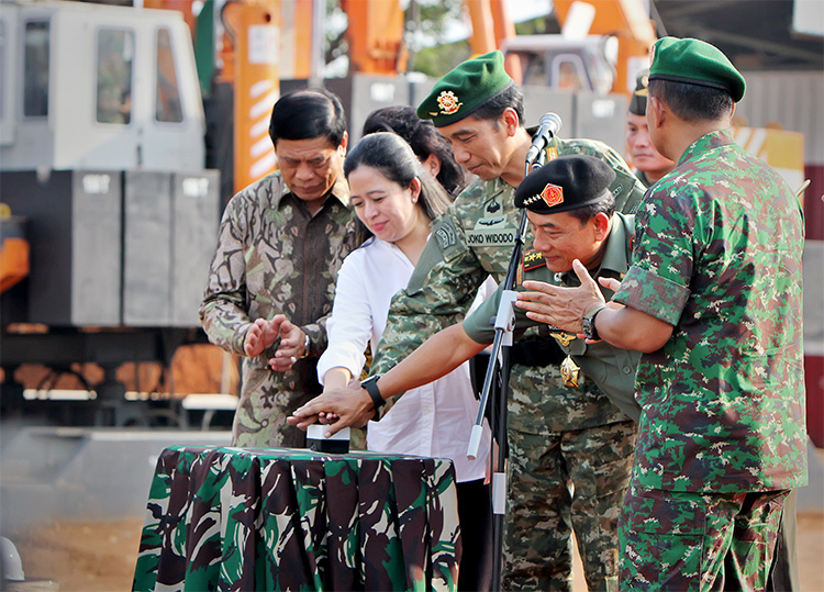 佐科維總統(tǒng)與各部長(zhǎng)、軍區(qū)總司令等啟動(dòng)奠基儀式