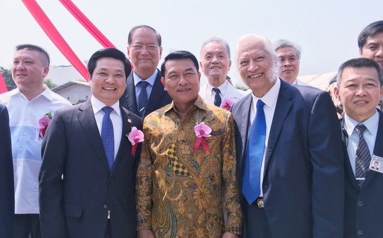 印尼三軍總司令MOELDOKO上將(中)和熊德龍董事長(zhǎng)、古少明主席在奠基儀式現(xiàn)場(chǎng)