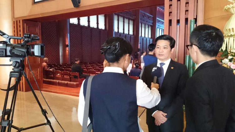 奠基儀式結(jié)束后,古少明主席接受當(dāng)?shù)孛襟w采訪