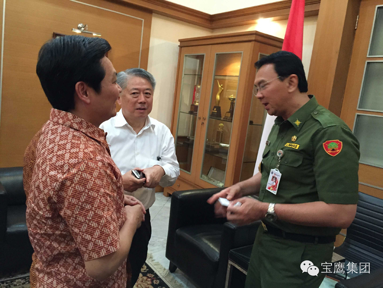鐘萬(wàn)學(xué)省長(zhǎng)用流利的客家話對(duì)古少明主席一行的到來(lái)表示歡迎,并再次稱(chēng)贊在昨天(5月31日)舉行的印尼慈濟(jì)醫(yī)院奠基儀式。古少明主席對(duì)鐘萬(wàn)學(xué)省長(zhǎng)百忙抽空接見(jiàn)表示深深的感謝,并向鐘省長(zhǎng)匯報(bào)了寶鷹集團(tuán)會(huì)在印尼投資發(fā)展基礎(chǔ)設(shè)施、智慧城市和智能家居建設(shè)以及互聯(lián)網(wǎng)電商等項(xiàng)目情況。鐘省長(zhǎng)同時(shí)介紹了雅加達(dá)在交通、醫(yī)療、安防等領(lǐng)域打造智慧城市的規(guī)劃以及2018年在雅加達(dá)舉行的亞洲運(yùn)動(dòng)會(huì)場(chǎng)館建設(shè)籌備工作計(jì)劃等。鐘省長(zhǎng)期待寶鷹集團(tuán)在印尼大展身手,并指出政府會(huì)給予大力的支持。