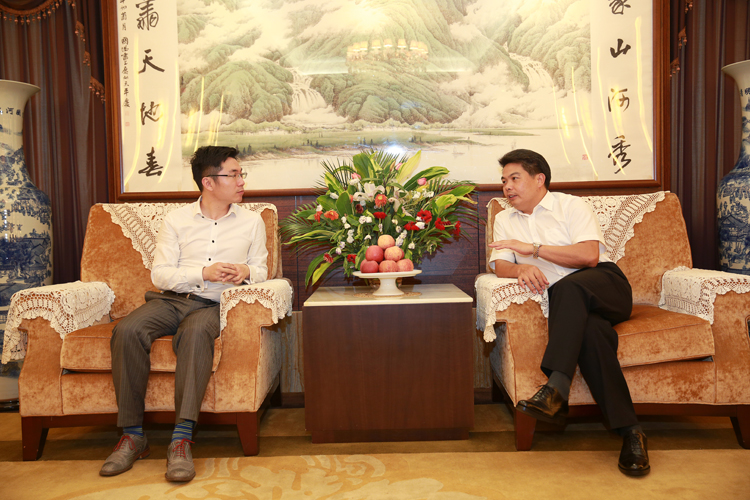 古少波董事長引導(dǎo)鄭峻峰參觀寶鷹集團(tuán)