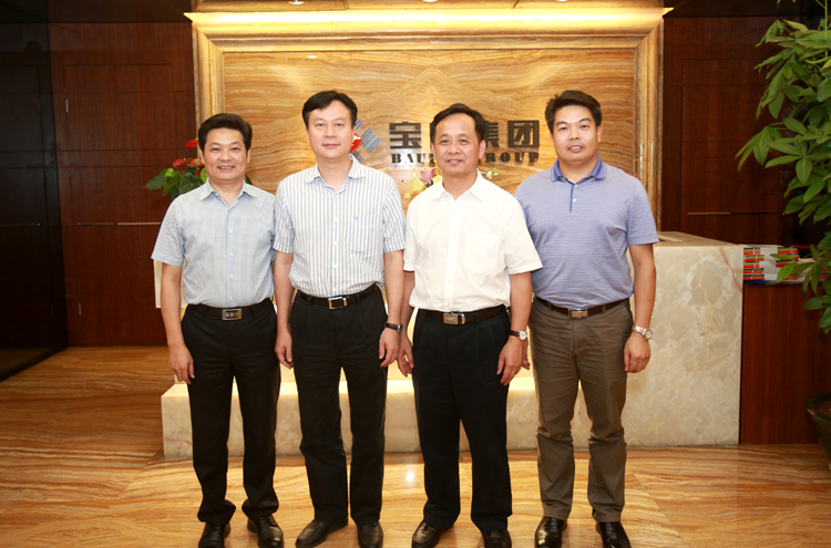 合影(右二為黃強(qiáng)書(shū)記,左二為譚君鐵市長(zhǎng),左一為古少明主席,右一為古少波董事長(zhǎng)。)
