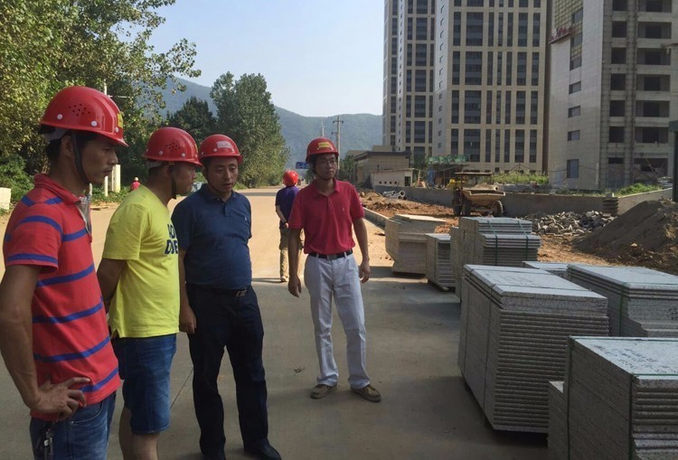 在黃石佳木公園198二期外裝項目部,王建國總工程師仔細查看了項目所用石材后,在現(xiàn)場立即向項目部相關人員強調了石材使用應特別注意的事項,要求項目部人員在施工過程中要注意新工法的應用,以達到石材運用的美觀大方。