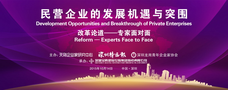 10月14日,由天澤企業(yè)家研究中心、深圳特區(qū)報(bào)、深圳龍崗青年企業(yè)家協(xié)會(huì)和深圳寶鷹建設(shè)集團(tuán)股份有限公司共同舉辦的“民營(yíng)企業(yè)的發(fā)展機(jī)遇與突圍,改革論道——專家面對(duì)面”交流會(huì)于寶鷹集團(tuán)盛大召開。