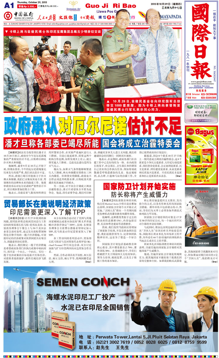 印尼《國際日報》專版刊發(fā)印尼寶鷹承建的環(huán)保節(jié)能屋移交新聞