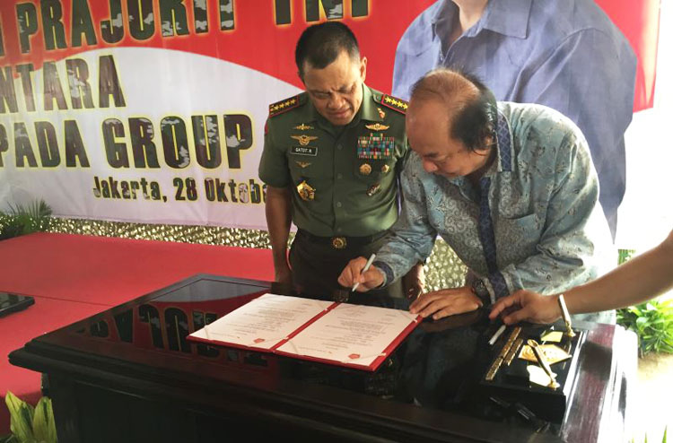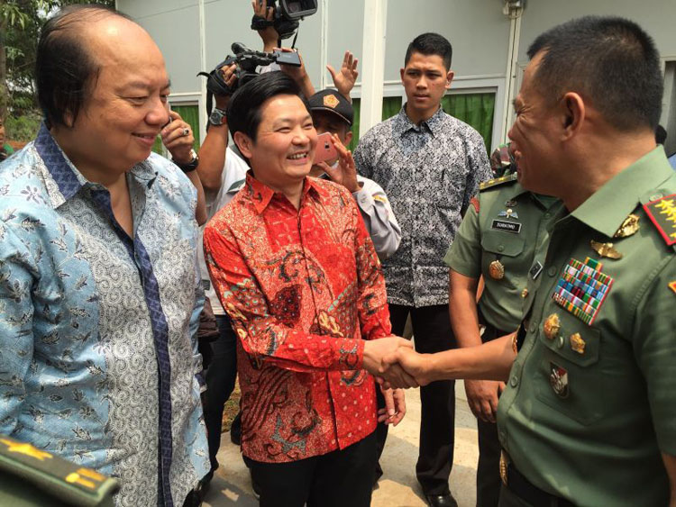 (印尼《國際日報》訊)10月28日,翁俊民基金會捐贈印尼國軍總部千套房屋移交儀式在雅加達東區(qū)Cijantung的陸軍特種部隊第7作戰(zhàn)騎兵營總部舉行。印尼國軍總司令卡鐸,翁俊民基金會創(chuàng)辦人、國信集團總裁翁俊民博士,寶鷹集團董事局主席、印尼寶鷹總裁古少明出席了移交儀式。