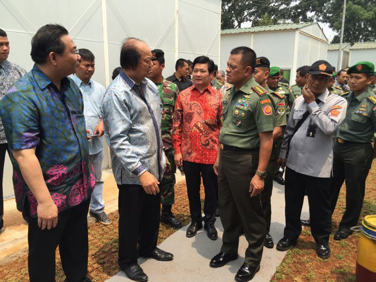 移交儀式上,翁俊民博士正式將已經(jīng)建成的環(huán)保節(jié)能房移交于印尼國軍總部。這批房屋由印尼寶鷹建設(shè)集團負責(zé)承建,并高質(zhì)量高標(biāo)準地按時完成了施工。本次興建的房屋均為節(jié)能環(huán)保的便利式房屋,這些房子分別位于雅加達、德博、勿加西和楠榜等地,將分配給印尼陸軍、海軍和空軍使用。