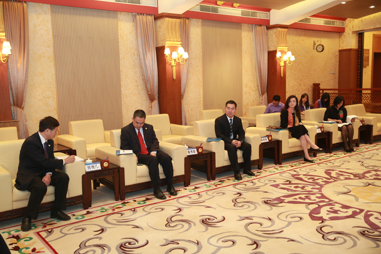 寶鷹廣東外語(yǔ)外貿(mào)大學(xué)黨委書(shū)記隋廣軍、副校長(zhǎng)何傳添等校領(lǐng)導(dǎo)盛情接待了古少明主席一行,并于行政辦公樓會(huì)議室與古少明主席進(jìn)行洽談。