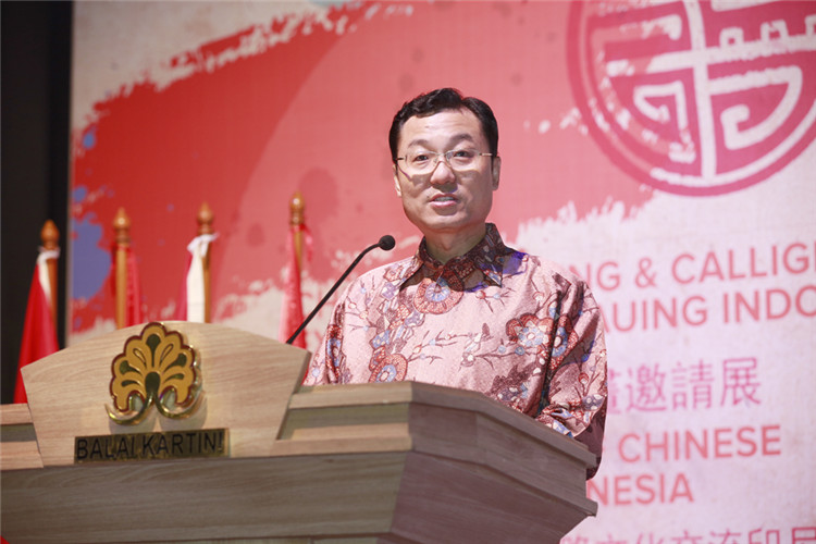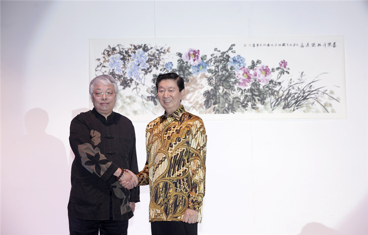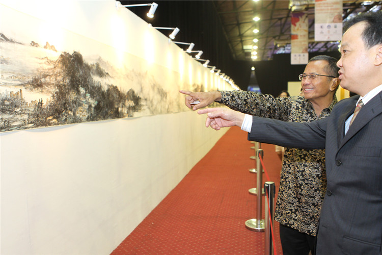 謝鋒還表示,藝術(shù)是聯(lián)結(jié)世界、溝通民心的橋梁。正如蠟染和木雕是印尼人民引以為傲的藝術(shù)瑰寶,水墨畫(huà)和書(shū)法承載著華夏五千年厚重文明,體現(xiàn)了中國(guó)美術(shù)的精髓,色彩看似單調(diào),意境豐富悠遠(yuǎn),凝聚了中華民族的智慧、性格和情感。希望此次書(shū)畫(huà)展能夠?yàn)橛∧崛嗣翊蜷_(kāi)一扇感受中國(guó)文化的窗口,增進(jìn)兩國(guó)人民的相互了解和友誼。