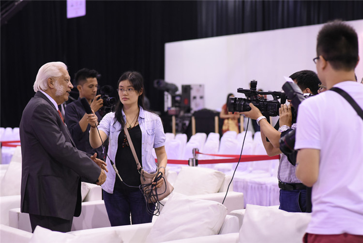 ▲周?chē)?guó)城主席接受印尼美都電視臺(tái)采訪