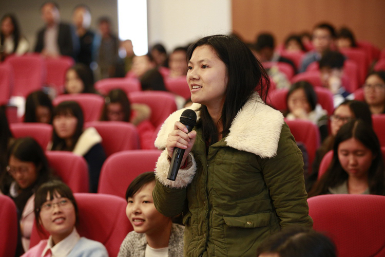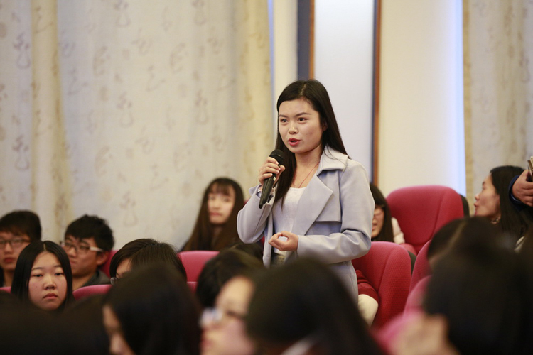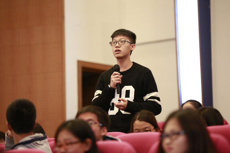 結(jié)合古樸副總裁的講座,有學(xué)生提出了年輕人應(yīng)該怎么看王國維“境界說”中的迷茫和困惑,以及失敗和挫折的問題,古樸副總裁不假思索,便將該問題的重點引向了“放下”二字上,理性地教學(xué)生們要謀定而后動,做自己該做的事。