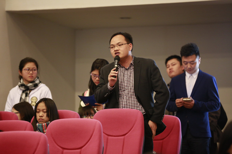 演講結(jié)尾,古樸副總裁還就學(xué)生們關(guān)心的問題進行了互動交流,現(xiàn)場氣氛熱烈。面對廣外商學(xué)院的教師提出的網(wǎng)絡(luò)大V傳播出的負能量會對學(xué)生產(chǎn)生誤導(dǎo)的問題,古樸副總裁睿智地以“發(fā)心”為關(guān)鍵點,詳細剖析了網(wǎng)絡(luò)負能量的方方面面,并為青年學(xué)子提出了針對性的意見。