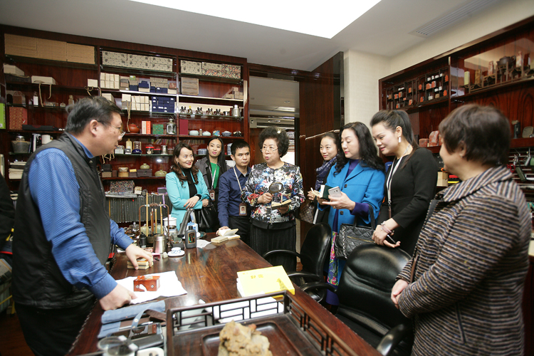 ▲于劍執(zhí)行會(huì)長(zhǎng)參觀寶鷹美術(shù)館