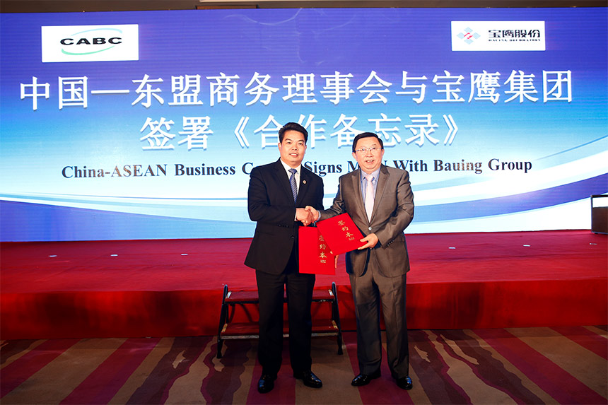 ▲古少波董事長代表寶鷹集團(tuán)與中國—東盟商務(wù)理事會(huì)簽訂了《合作備忘錄》