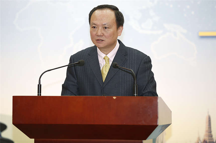 ▲商務(wù)部對外交流與合作司處長李洪偉發(fā)言