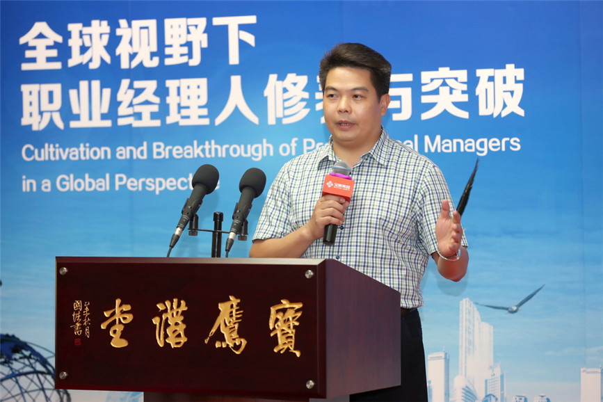 授課階段,廣東外語外貿(mào)大學(xué)商學(xué)院執(zhí)行院長朱文忠?guī)砹恕度蛞曇跋侣殬I(yè)經(jīng)理人職業(yè)道德與社會責(zé)任》的講座。他結(jié)合實際案例,從組織文化和價值觀入手,詳解了組織價值觀、波特價值鏈模型和企業(yè)組織道德的關(guān)系,并得出要培養(yǎng)組織感恩責(zé)任文化的結(jié)論。