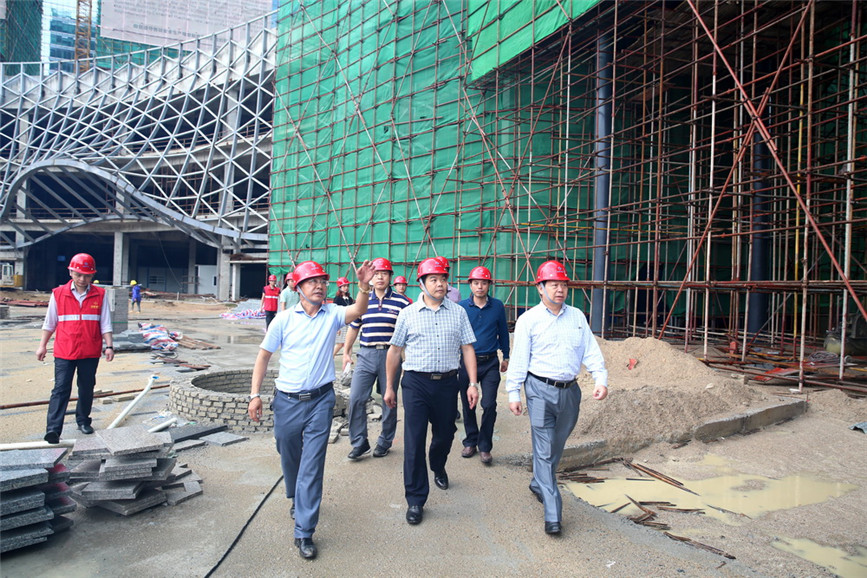 隨后,在寶鷹集團項目部工作人員的陪同下,雙方來到施工現(xiàn)場,就工程建設的進度問題仔細核對。在由寶鷹集團負責施工的裙樓展示區(qū)幕墻工程施工現(xiàn)場,古少波董事長及寶鷹集團眾高管就施工工藝、所用材料、項目施工難點等情況向項目部同事一一仔細詢問,并現(xiàn)場檢查安全施工事項,叮囑現(xiàn)場施工人員嚴把安全生產關。