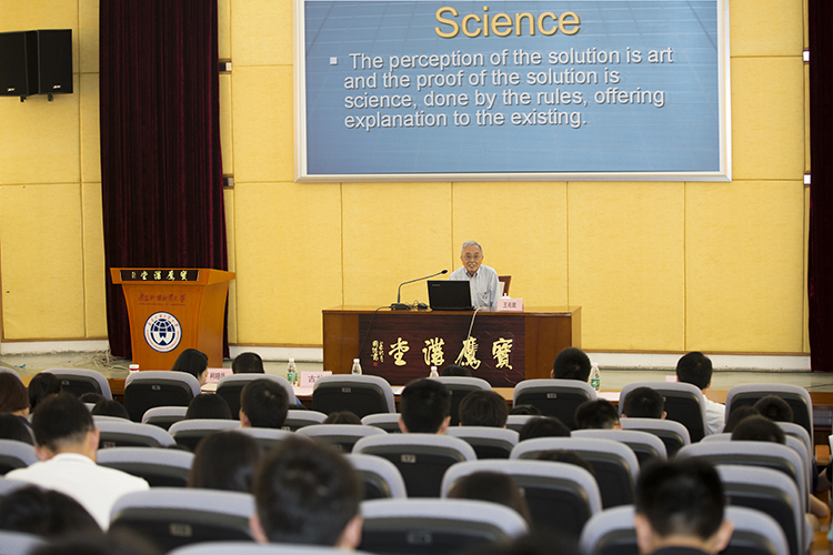 隨后,王兆凱院士開講《數(shù)學(xué)、科學(xué)、工程與工業(yè)創(chuàng)新》。講座中,王兆凱院士先通過(guò)對(duì)數(shù)學(xué)、科學(xué)、工程與工業(yè)的精確定義,并闡述各個(gè)學(xué)科之間關(guān)聯(lián),帶領(lǐng)大家回顧社會(huì)發(fā)展過(guò)程中各學(xué)科的相互推進(jìn),指出了部分學(xué)生在求知過(guò)程中的誤解。王兆凱院士認(rèn)為:數(shù)學(xué)是可證的,并可用多種方式來(lái)進(jìn)行求證;科學(xué)是客觀存在的,無(wú)需驗(yàn)證但一直在改進(jìn),數(shù)學(xué)在社會(huì)發(fā)展到一定階段后才與科學(xué)產(chǎn)生了聯(lián)系;科學(xué)用于人工便是工程,工程匯聚形成工業(yè)。