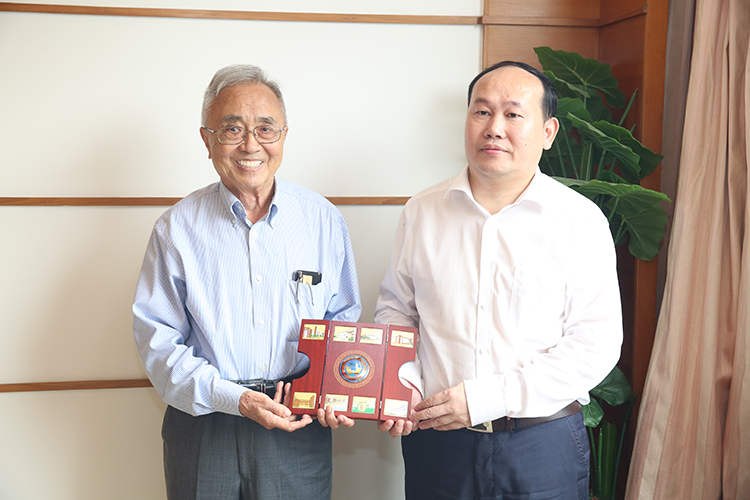 廣東外語(yǔ)外貿(mào)大學(xué)副校長(zhǎng)陽(yáng)愛(ài)民向王兆凱院士贈(zèng)送禮物